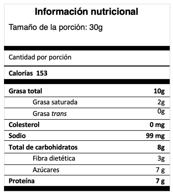 La mezcla perfecta de nuez pecana, nuez de la India, almendra fileteada, semillas de girasol, pepita, arándano y mango enchilados y moras deshidratadas.