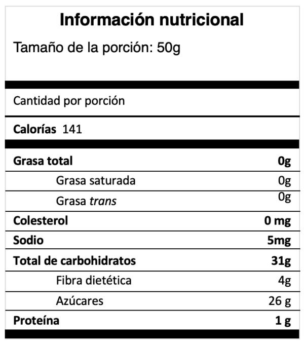 Chabacano deshidratado y dióxido de azufre (conservador).