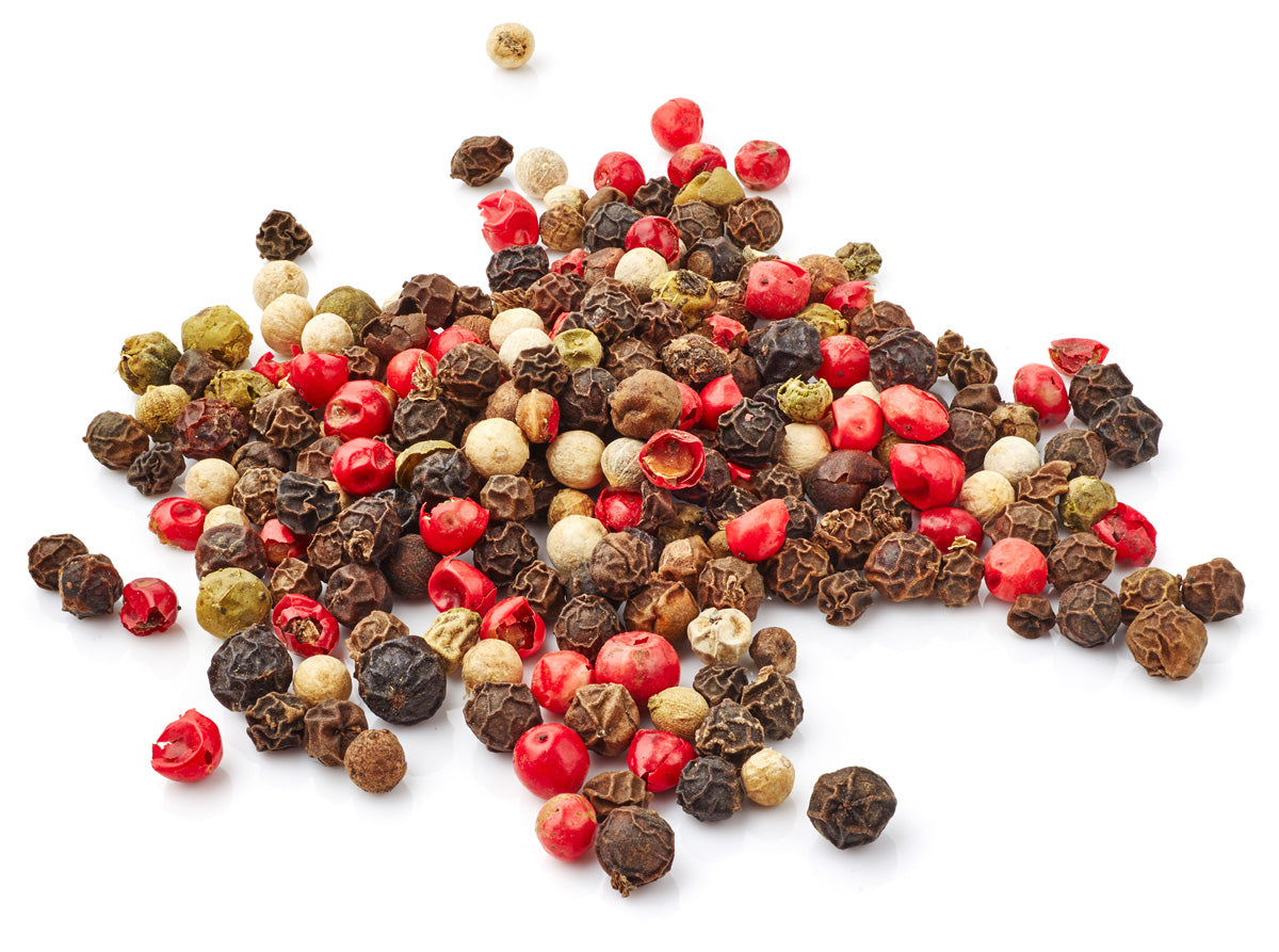 Mezcla de pimienta negra, blanca, verde y rosa. No solo es diferente su apariencia y color, sino que también los sabores son distintos.